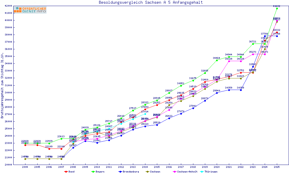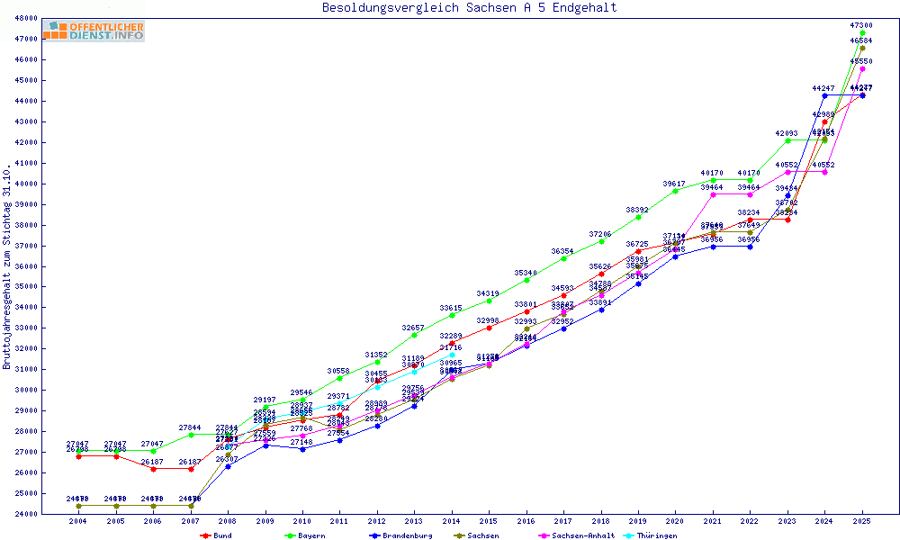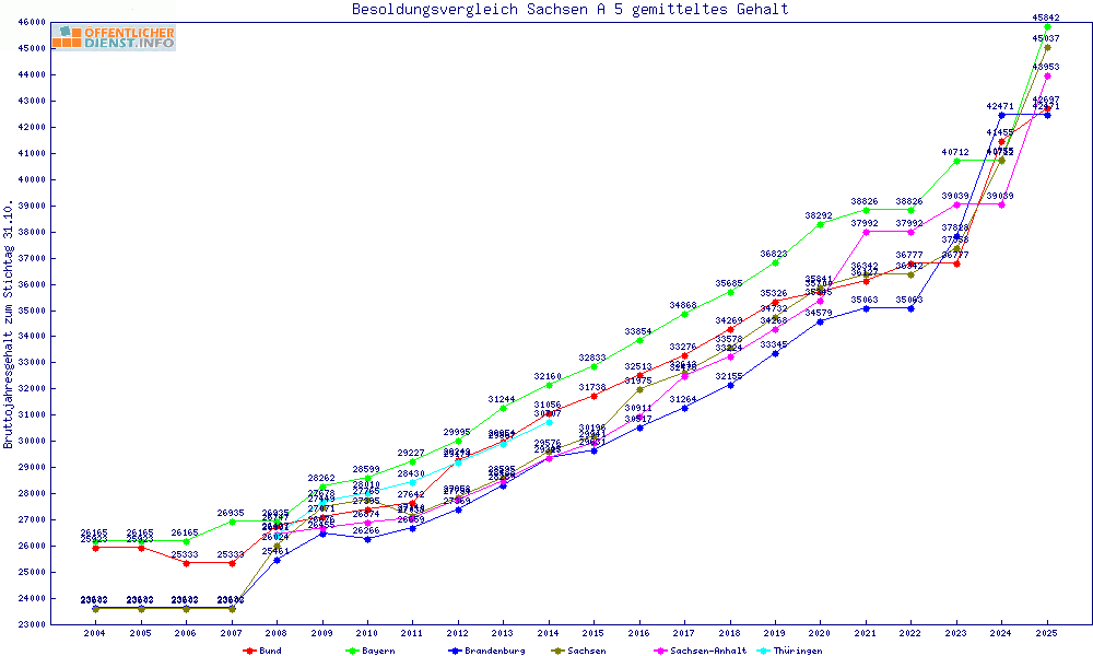 | Besoldungsvergleich A 5 im Jahr 2025 | gemitteltes Gehalt | ||||||