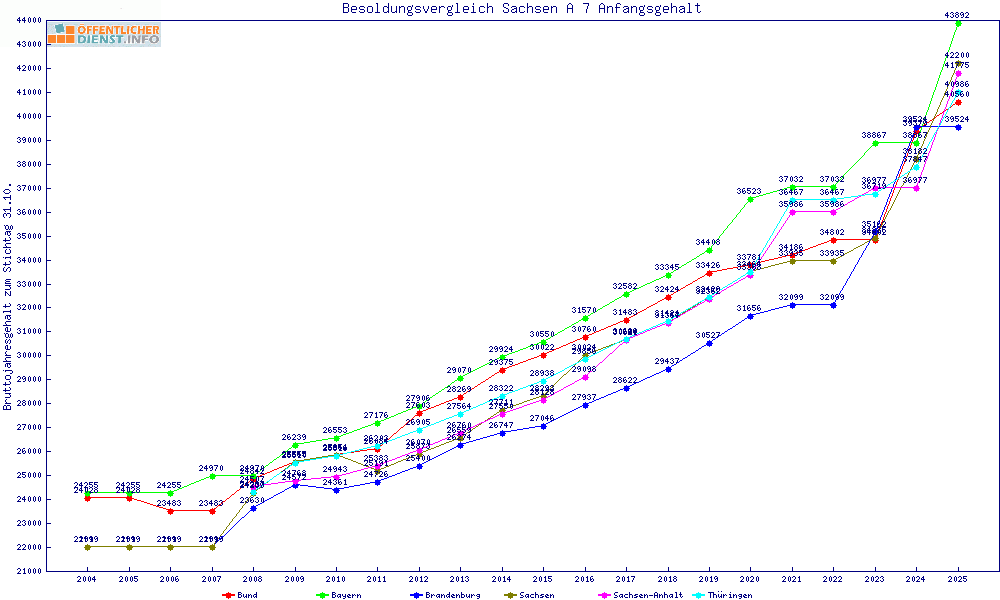 | Besoldungsvergleich A 7 im Jahr 2025 | Anfangsgehalt | ||||||