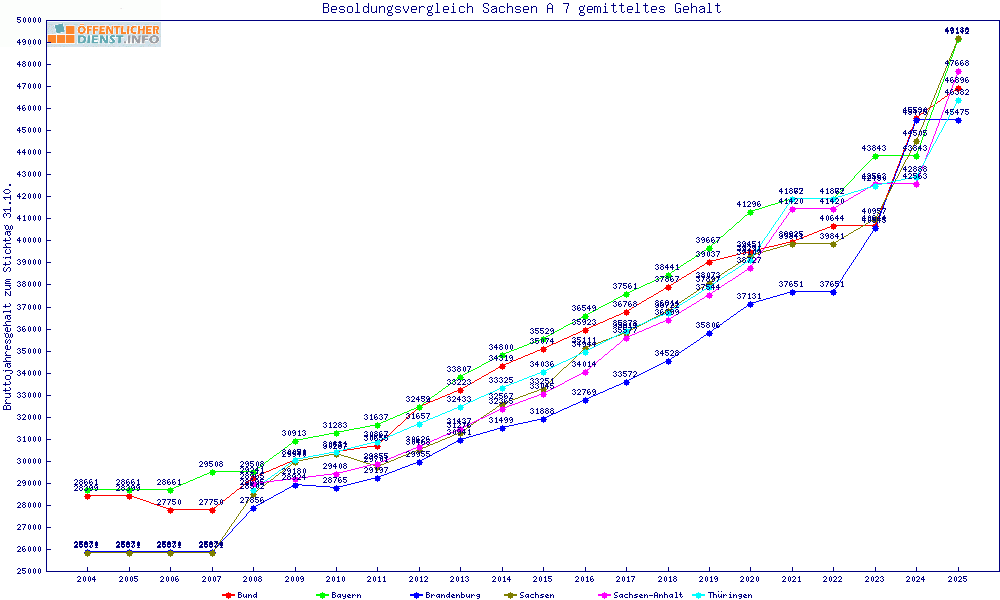 | Besoldungsvergleich A 7 im Jahr 2025 | gemitteltes Gehalt | ||||||