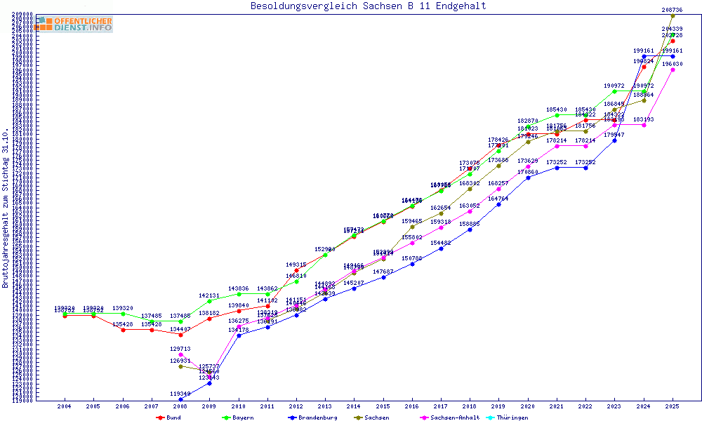 | Besoldungsvergleich B 11 im Jahr 2025 | Anfangsgehalt | ||||||