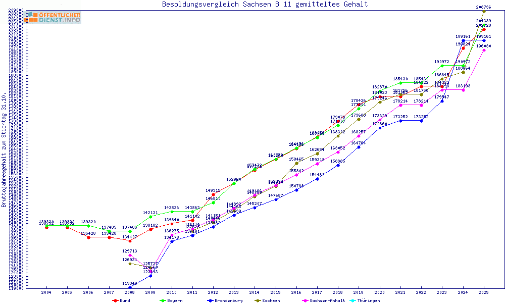 | Besoldungsvergleich B 11 im Jahr 2025 | gemitteltes Gehalt | ||||||