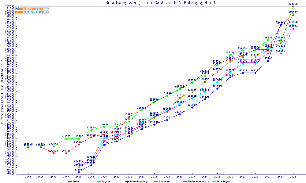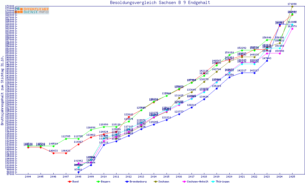 | Besoldungsvergleich B 9 im Jahr 2025 | Anfangsgehalt | ||||||