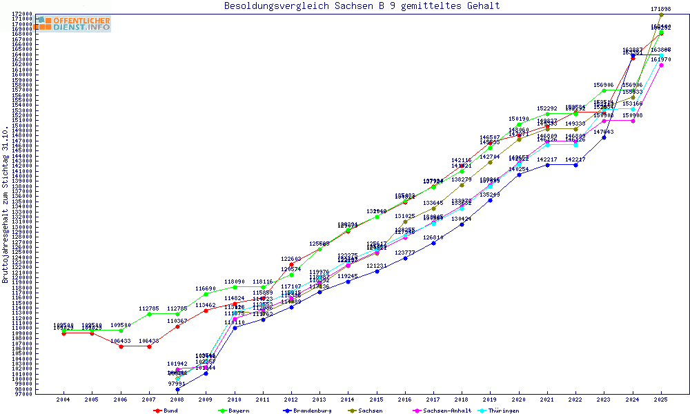 | Besoldungsvergleich B 9 im Jahr 2025 | gemitteltes Gehalt | ||||||
