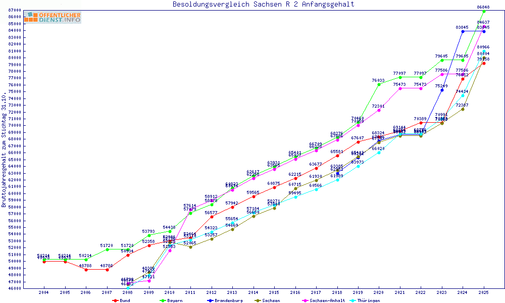 | Besoldungsvergleich R 2 im Jahr 2025 | Anfangsgehalt | ||||||