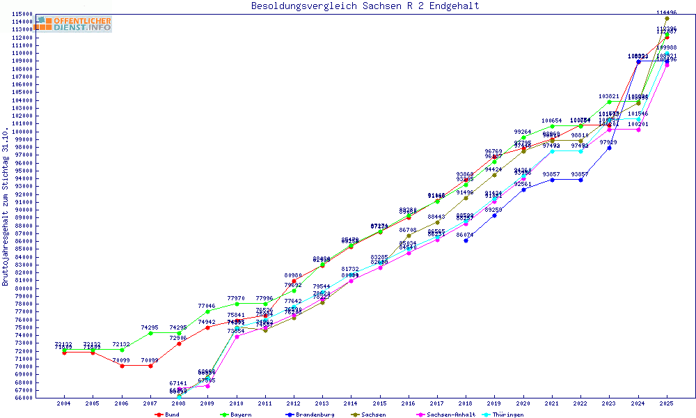 | Besoldungsvergleich R 2 im Jahr 2025 | Endgehalt | |||||||