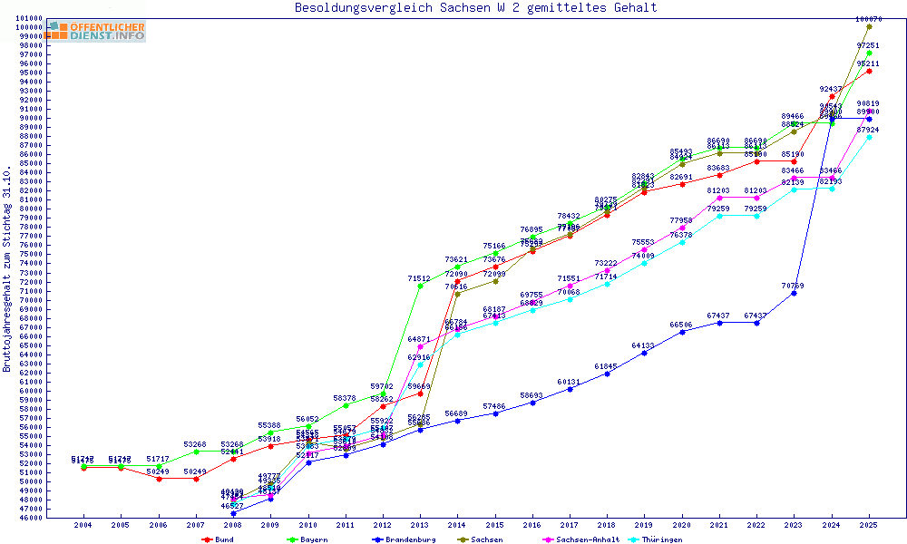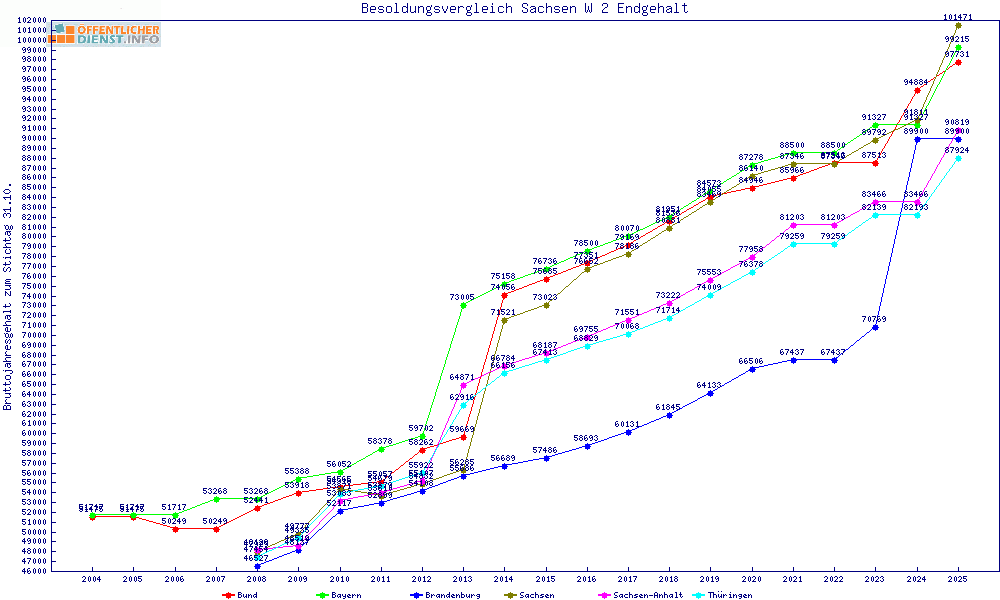 | Sachsen | 101.472 € | +12632 € | +14.2% | 6 Jahre | ||||
