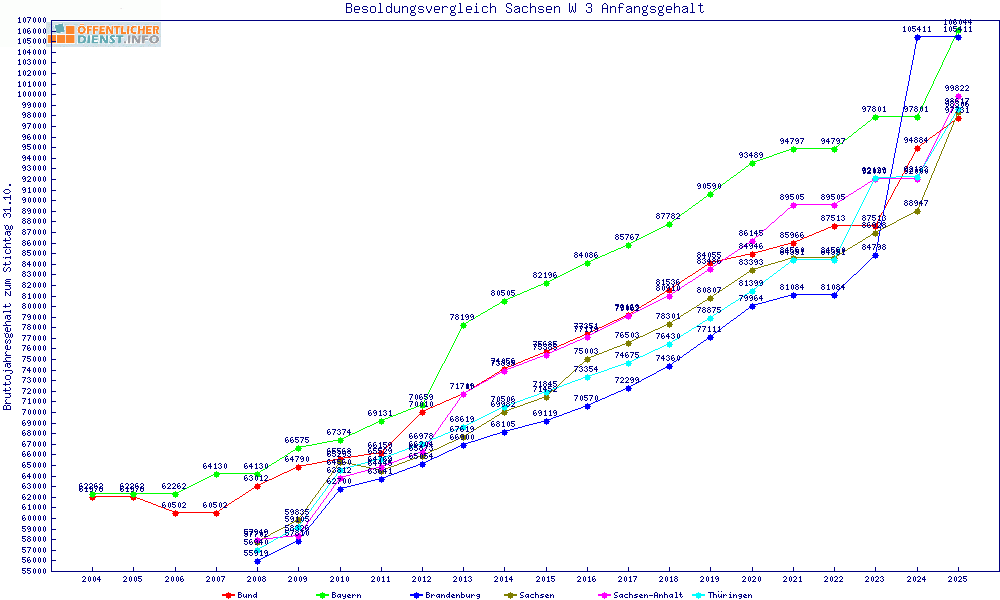 | Besoldungsvergleich W 3 im Jahr 2025 | Anfangsgehalt | ||||||