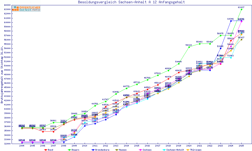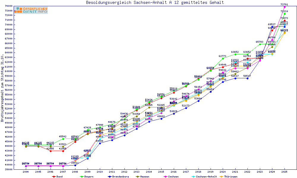 | Sachsen-Anhalt | 74.628 € | +1843 € | +2.5% | 23 Jahre | ||||