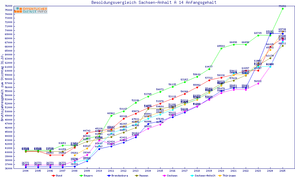 | Besoldungsvergleich A 14 im Jahr 2025 | Anfangsgehalt | ||||||