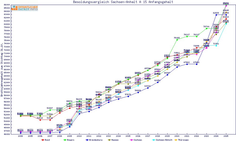 | Besoldungsvergleich A 15 im Jahr 2025 | Anfangsgehalt | ||||||