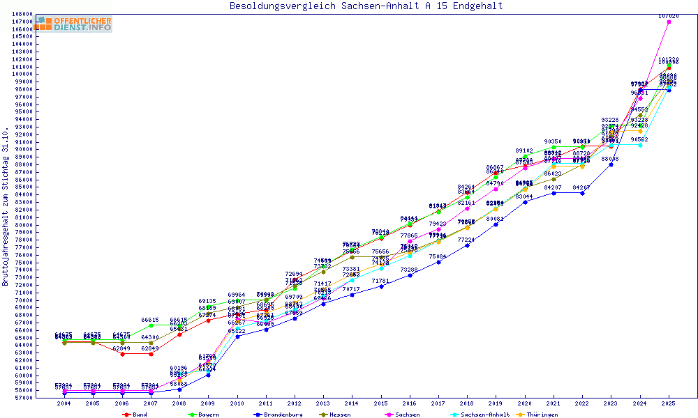 | Sachsen | 107.021 € | +8714 € | +8.9% | +10002 € | +10.3% | 21 Jahre | ||
