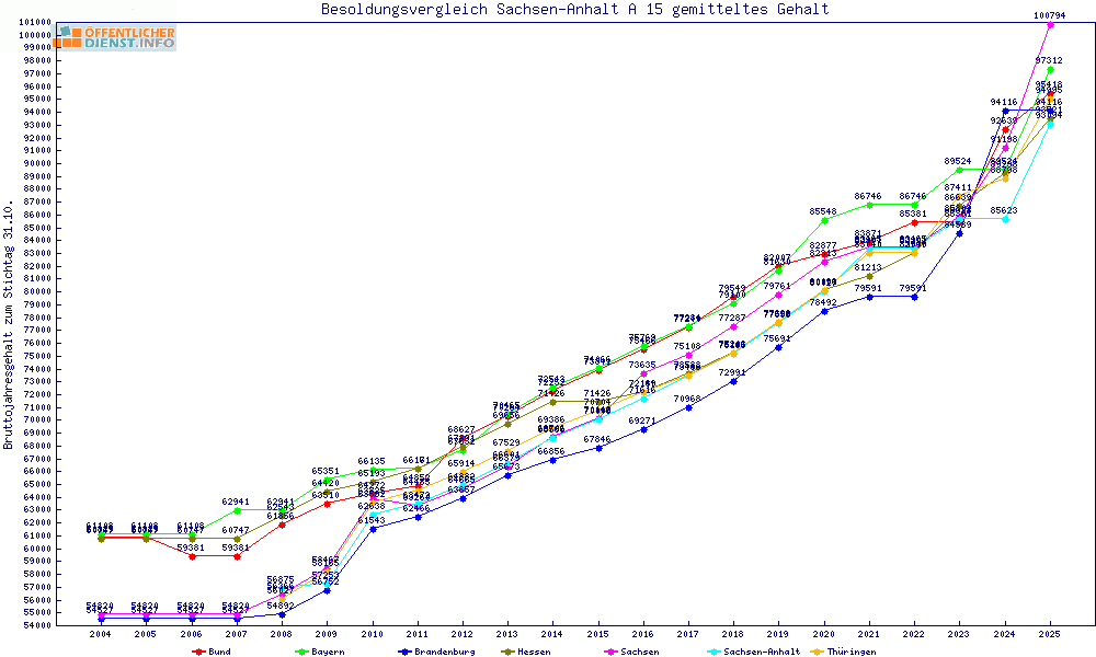 | Sachsen-Anhalt | 98.306 € | +1287 € | +1.3% | 23 Jahre | ||||