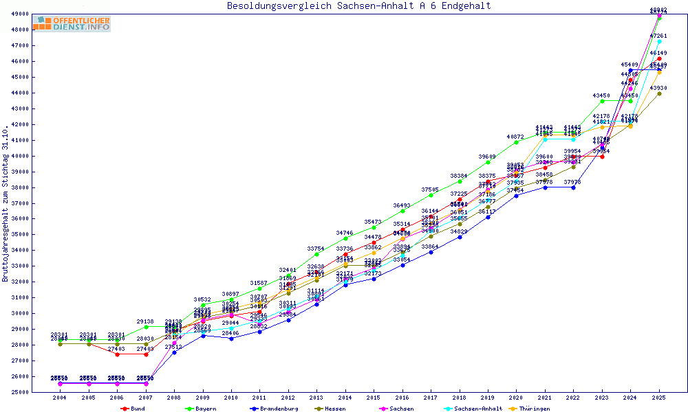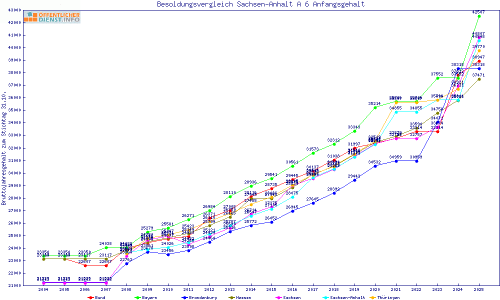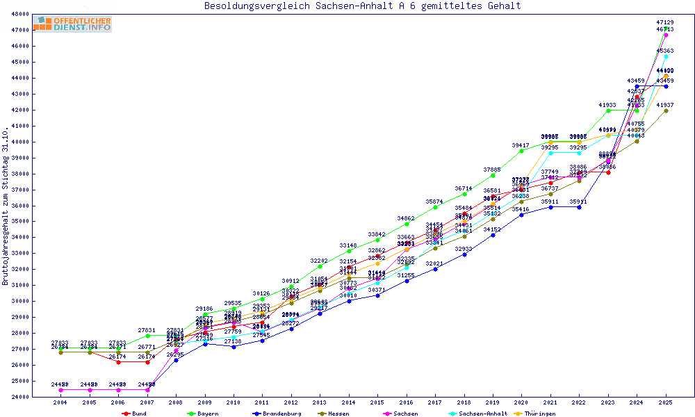 | Sachsen-Anhalt | 47.262 € | +1609 € | +3.5% | 23 Jahre | ||||