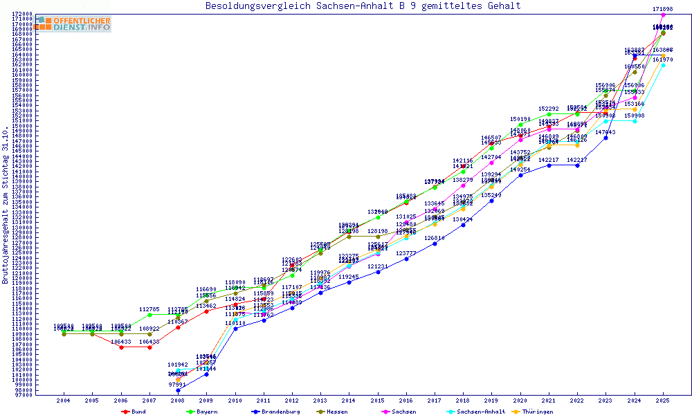 | Besoldungsvergleich B 9 im Jahr 2025 | gemitteltes Gehalt | ||||||