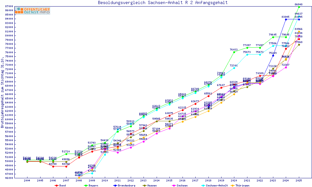 | Besoldungsvergleich R 2 im Jahr 2025 | Anfangsgehalt | ||||||