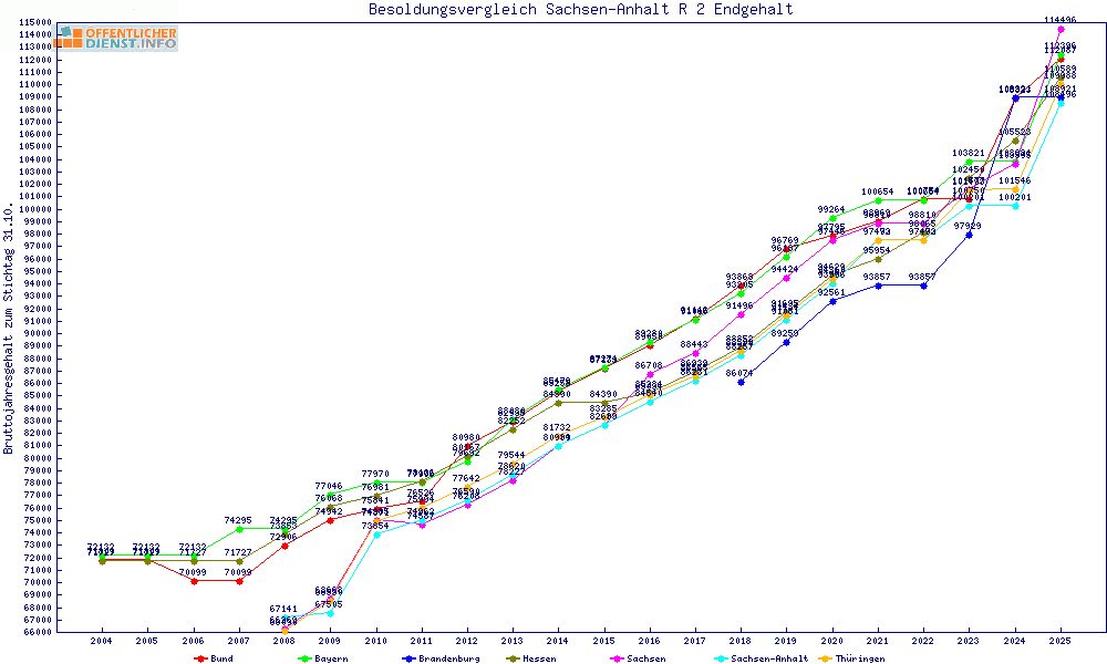| Besoldungsvergleich R 2 im Jahr 2025 | Endgehalt | |||||||