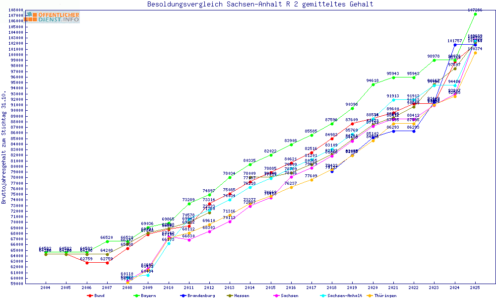 | Besoldungsvergleich R 2 im Jahr 2025 | gemitteltes Gehalt | ||||||