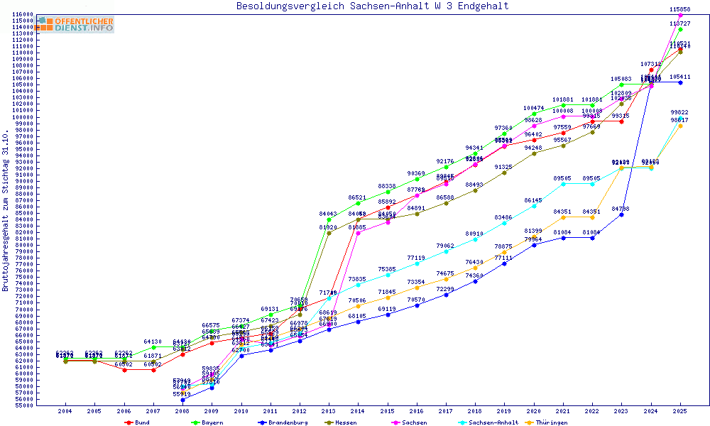 | Sachsen | 115.858 € | +16035 € | +16.1% | +15016 € | +14.9% | 6 Jahre | ||