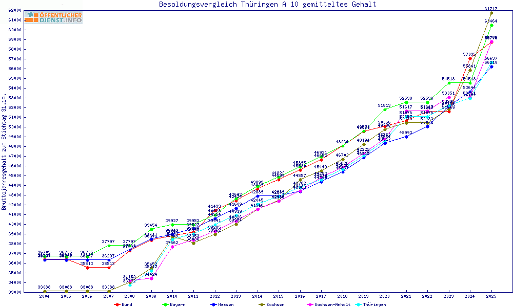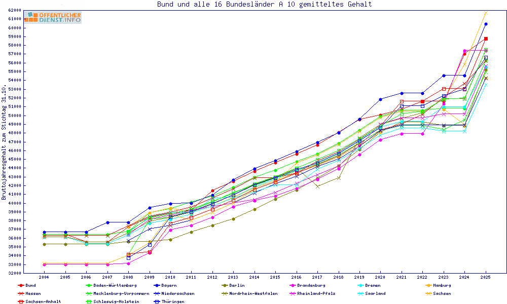 | Besoldungsvergleich A 10 im Jahr 2025 | gemitteltes Gehalt | ||||||