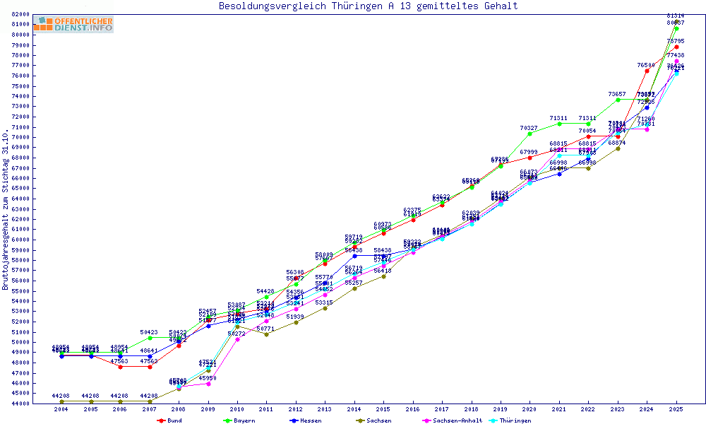 | Besoldungsvergleich A 13 im Jahr 2025 | gemitteltes Gehalt | ||||||