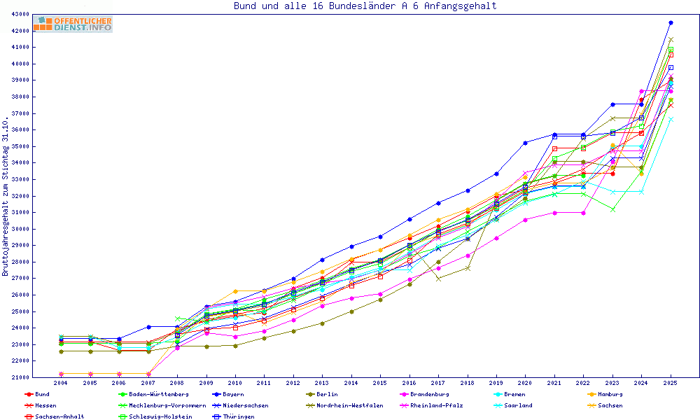 | Besoldungsvergleich A 6 im Jahr 2025 | Anfangsgehalt | ||||||