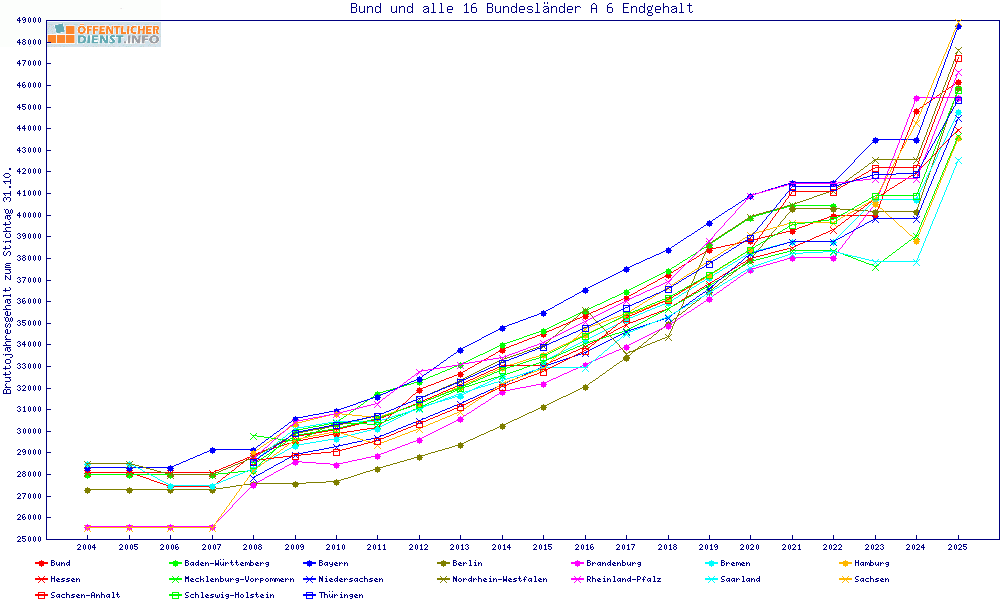 | Besoldungsvergleich A 6 im Jahr 2025 | Endgehalt | |||||||