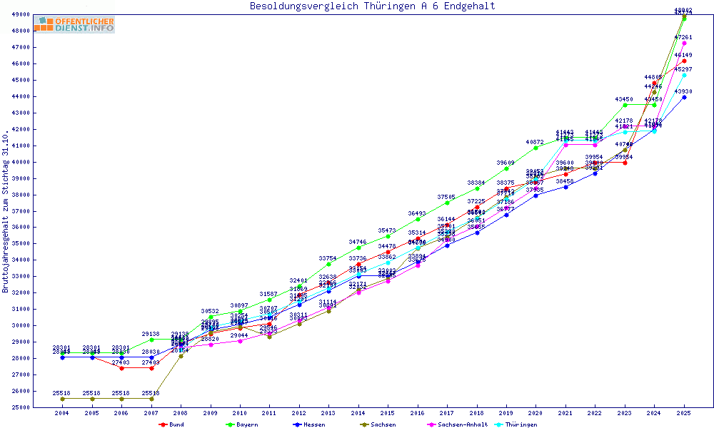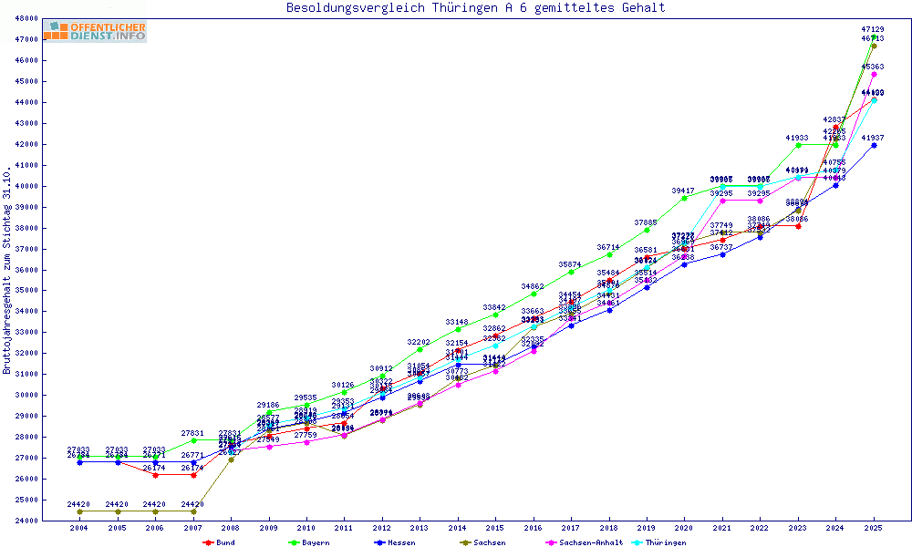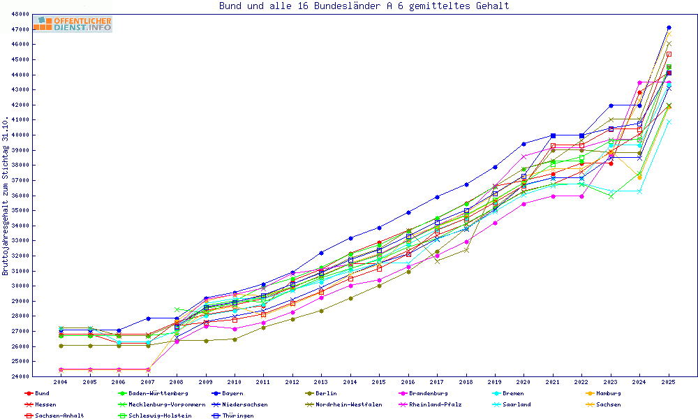 | Besoldungsvergleich A 6 im Jahr 2025 | gemitteltes Gehalt | ||||||