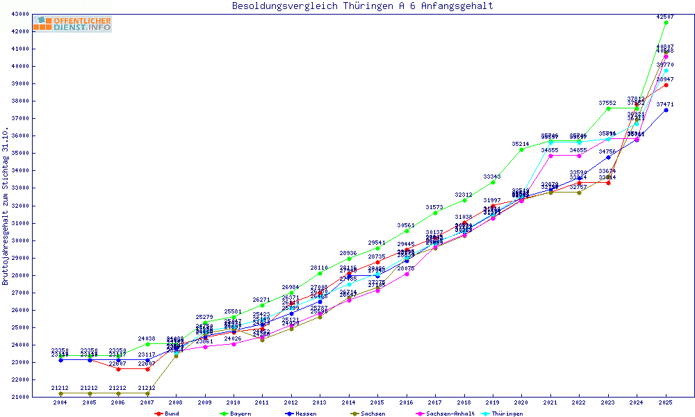 | Sachsen | 40.807 € | +1036 € | +2.6% | +1502 € | +3.8% | ||