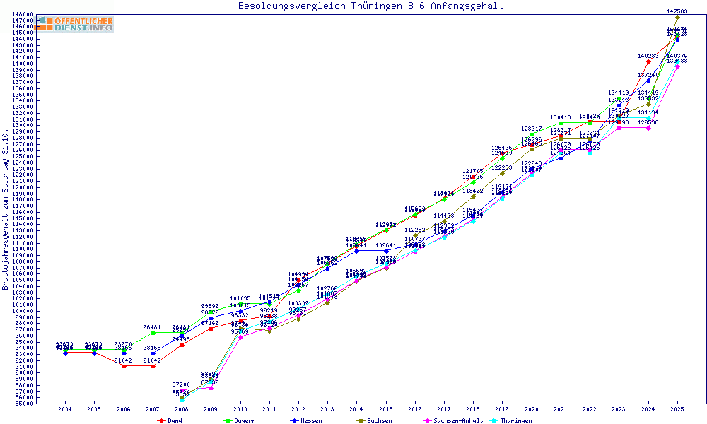 | Besoldungsvergleich B 6 im Jahr 2025 | Anfangsgehalt | ||||||