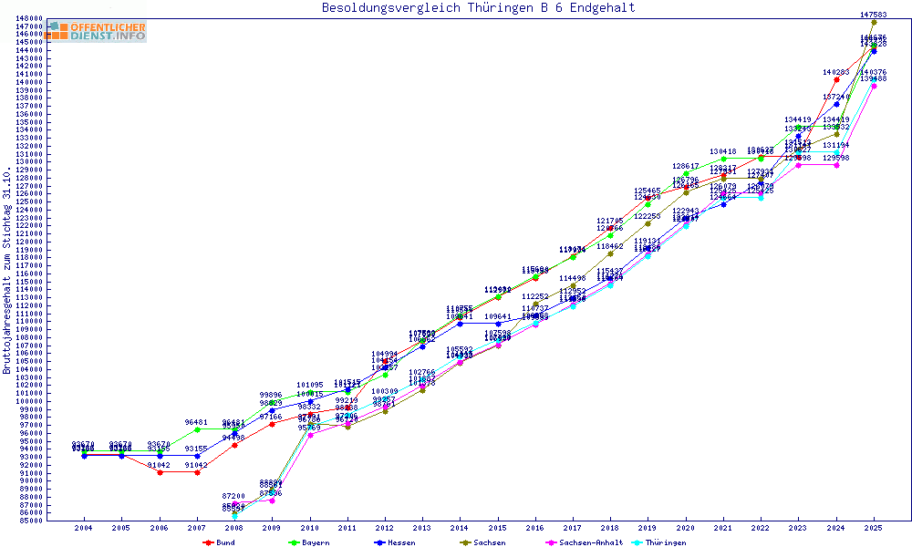| Besoldungsvergleich B 6 im Jahr 2025 | gemitteltes Gehalt | ||||||