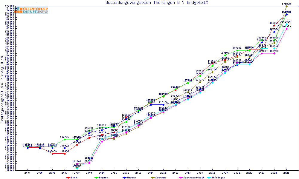 | Besoldungsvergleich B 9 im Jahr 2025 | gemitteltes Gehalt | ||||||