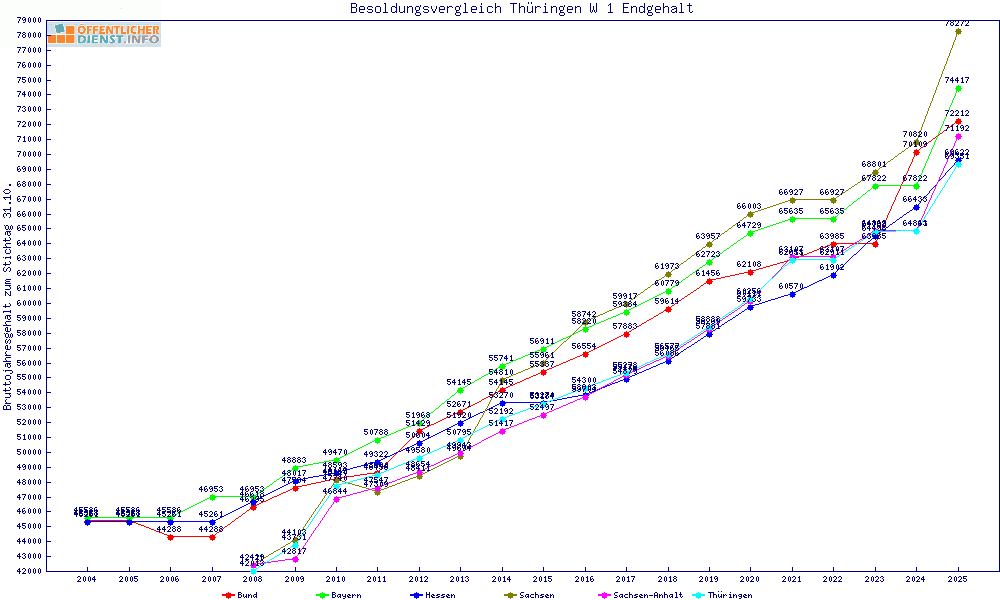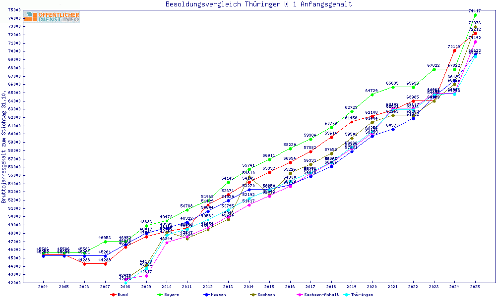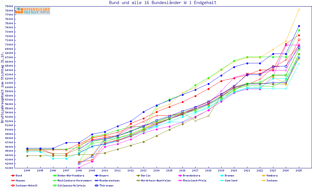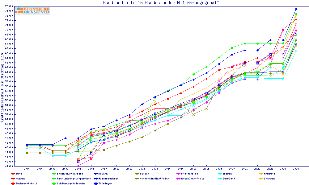| Besoldungsvergleich W 1 im Jahr 2025 | Anfangsgehalt | ||||||