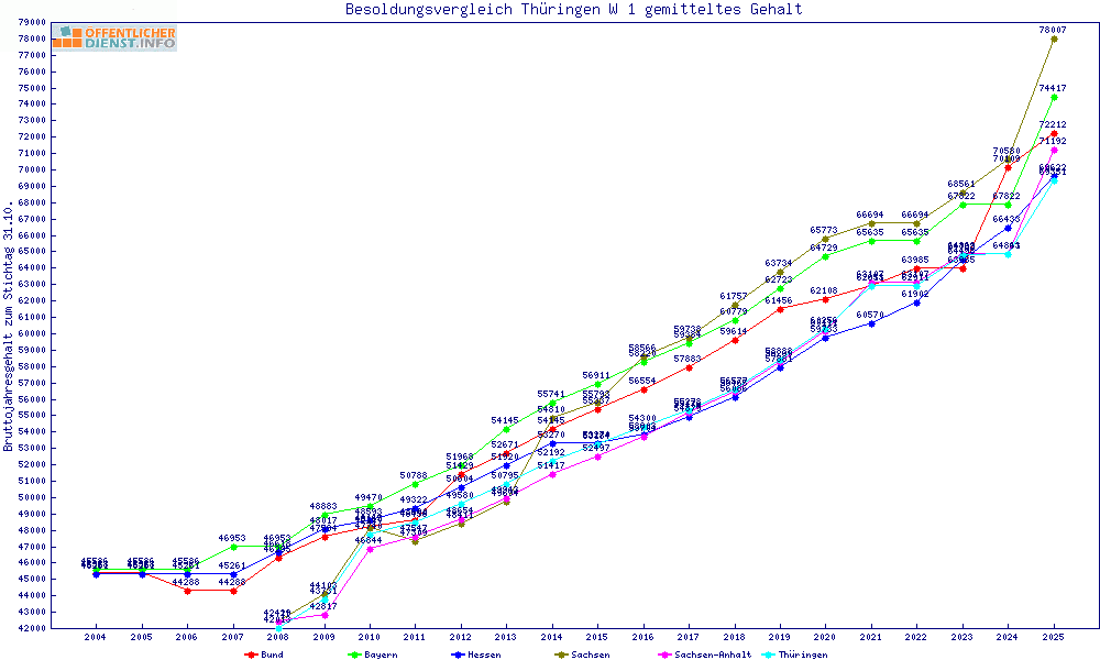 | Sachsen | 78.272 € | +8921 € | +12.9% | +8400 € | +12.0% | 2 Jahre | ||