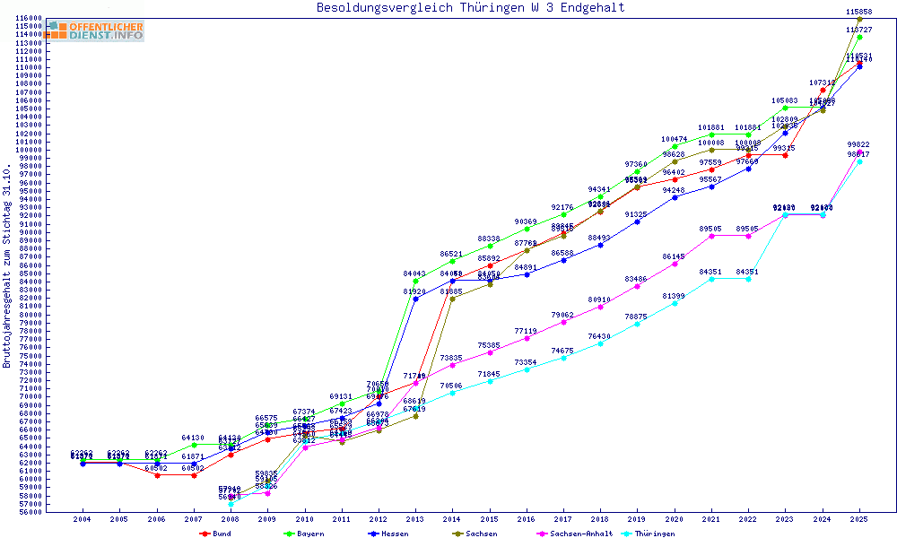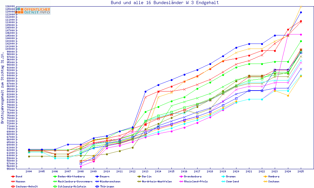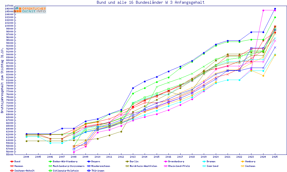 | Besoldungsvergleich W 3 im Jahr 2025 | Anfangsgehalt | ||||||