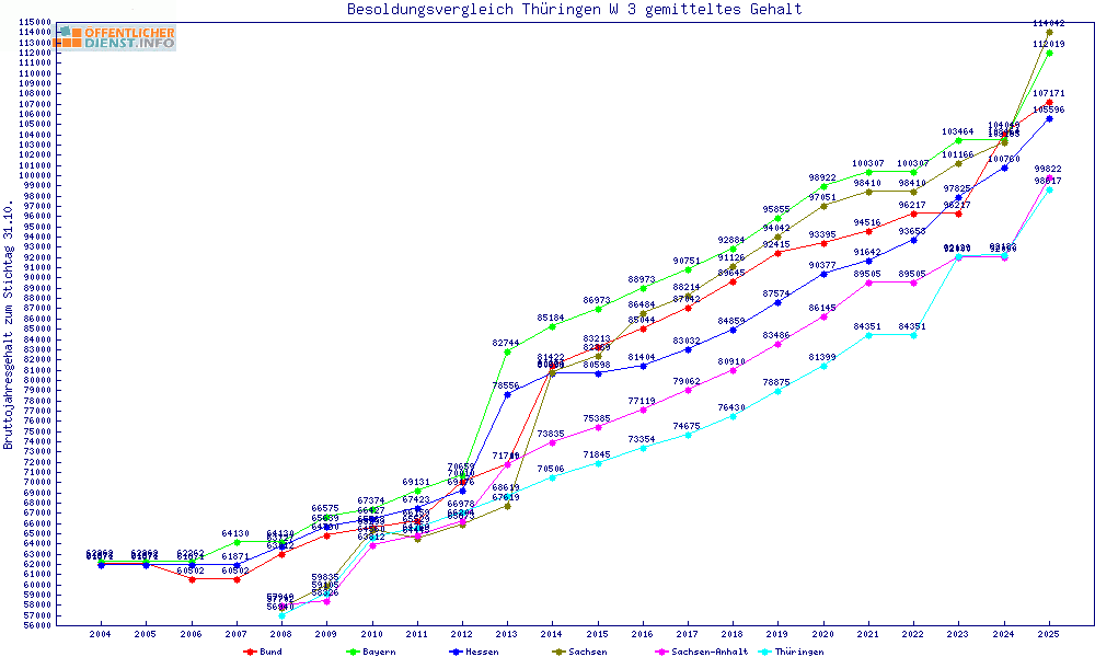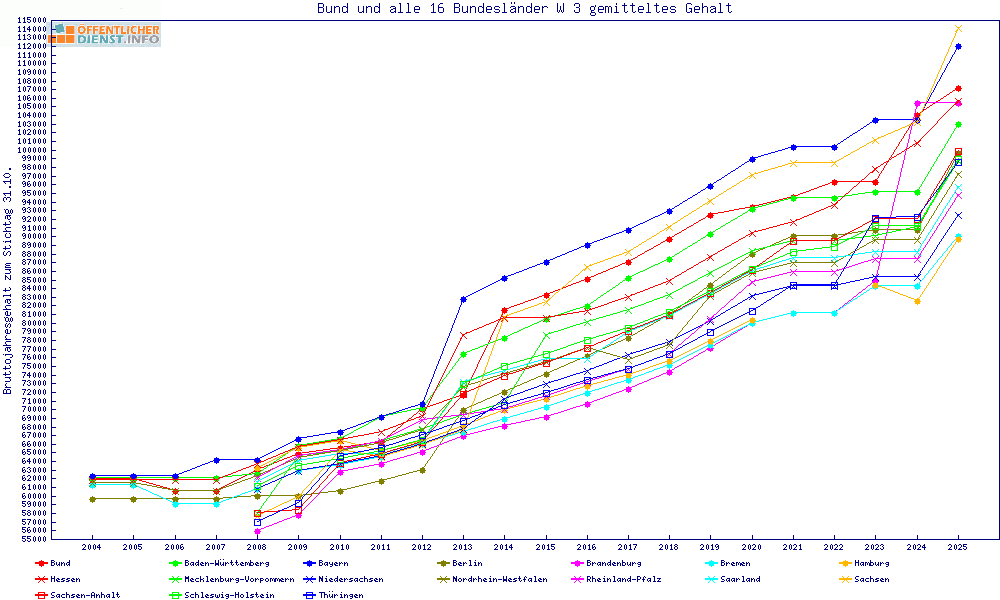| Besoldungsvergleich W 3 im Jahr 2025 | gemitteltes Gehalt | ||||||