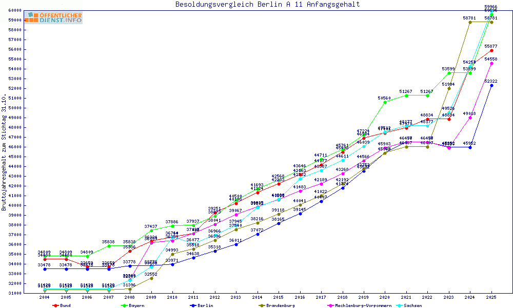| Besoldungsvergleich A 11 im Jahr 2025 | Anfangsgehalt | ||||||