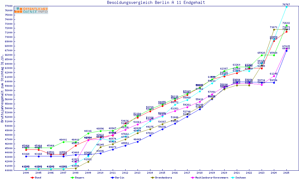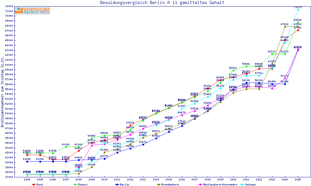 | Besoldungsvergleich A 11 im Jahr 2025 | gemitteltes Gehalt | ||||||