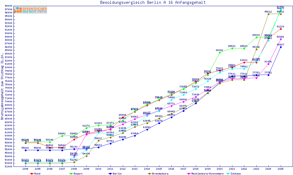 | Besoldungsvergleich A 16 im Jahr 2025 | Anfangsgehalt | ||||||