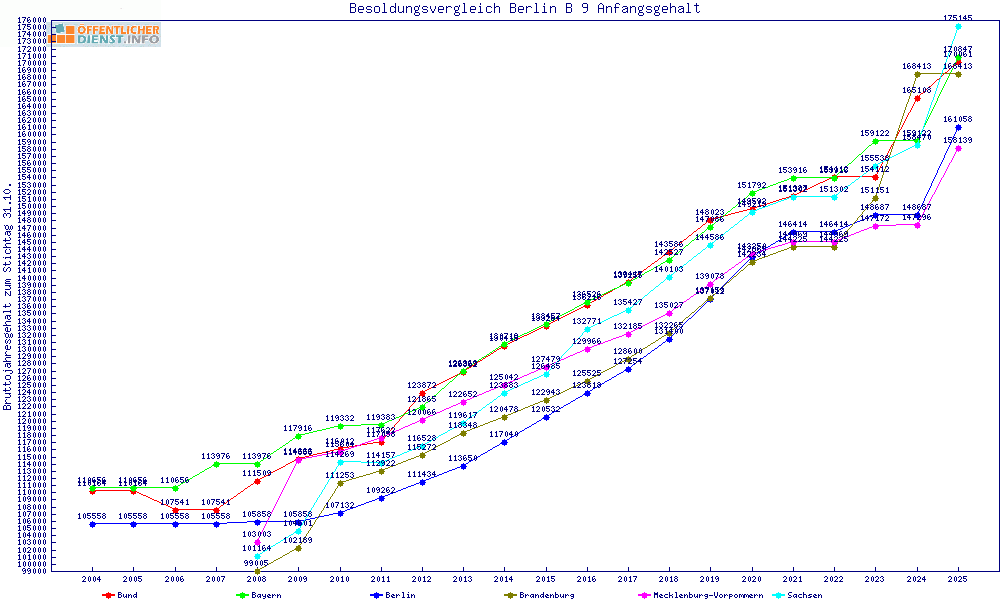 | Besoldungsvergleich B 9 im Jahr 2025 | Anfangsgehalt | ||||||