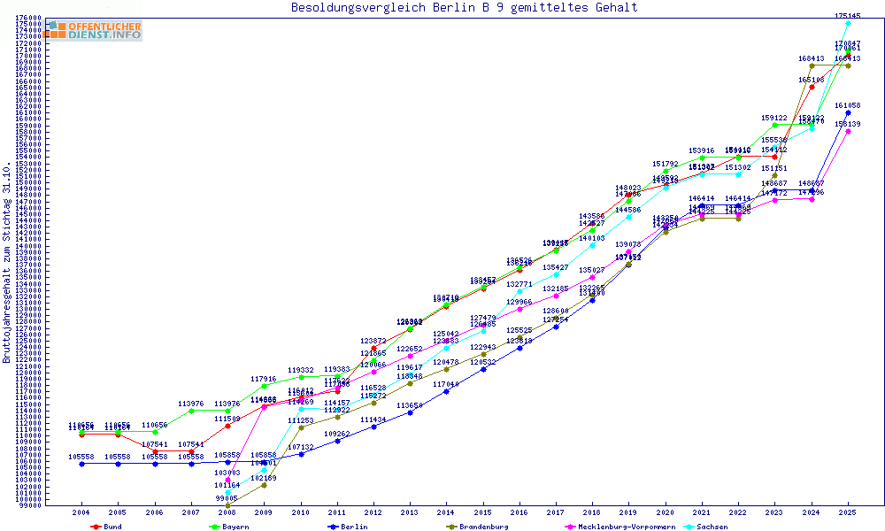 | Besoldungsvergleich B 9 im Jahr 2025 | gemitteltes Gehalt | ||||||