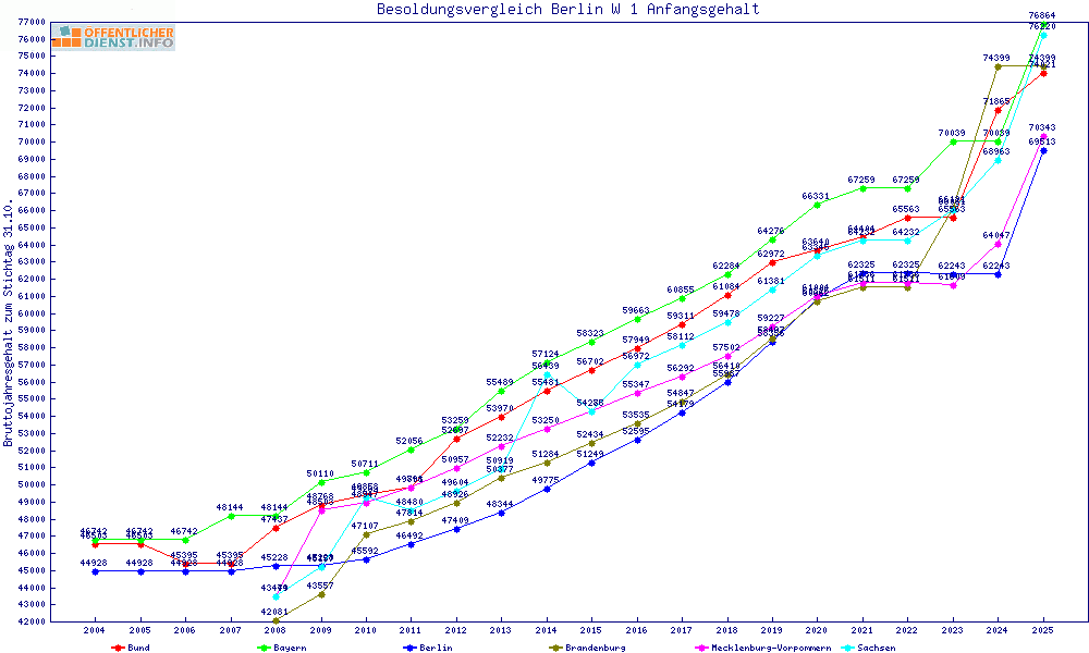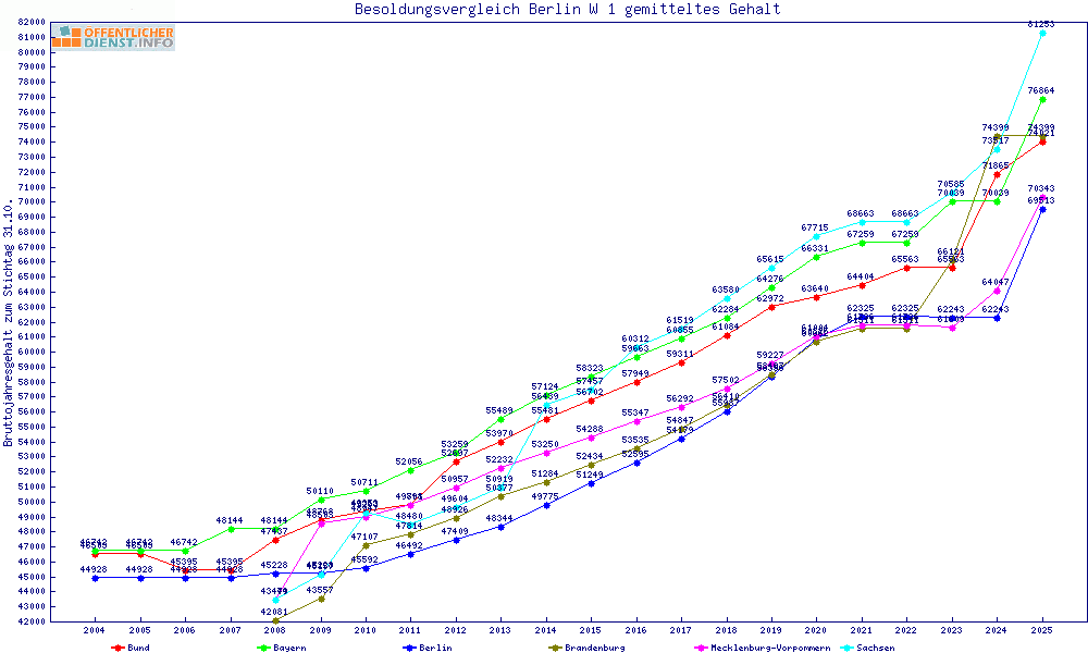 | Besoldungsvergleich W 1 im Jahr 2025 | gemitteltes Gehalt | ||||||