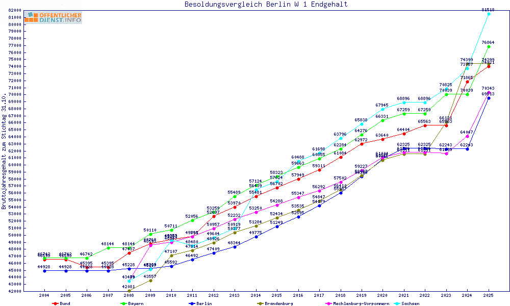 | Sachsen | 81.519 € | +12004 € | +17.3% | +8447 € | +11.6% | 2 Jahre | ||