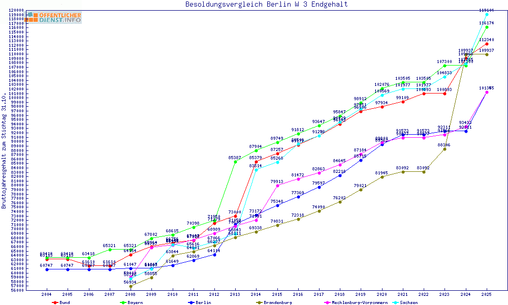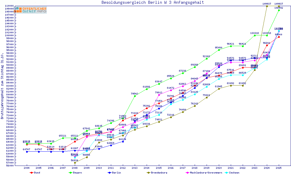 | Sachsen-Anhalt | 103.954 € | +2598 € | +2.6% | +3000 € | +3.0% | ||