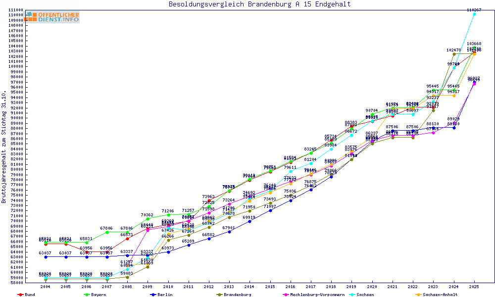 | Brandenburg | 102.479 € | +2260 € | +2.3% | 18 Jahre | ||||