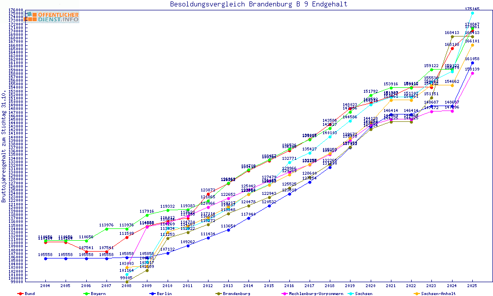 | Besoldungsvergleich B 9 im Jahr 2025 | gemitteltes Gehalt | ||||||