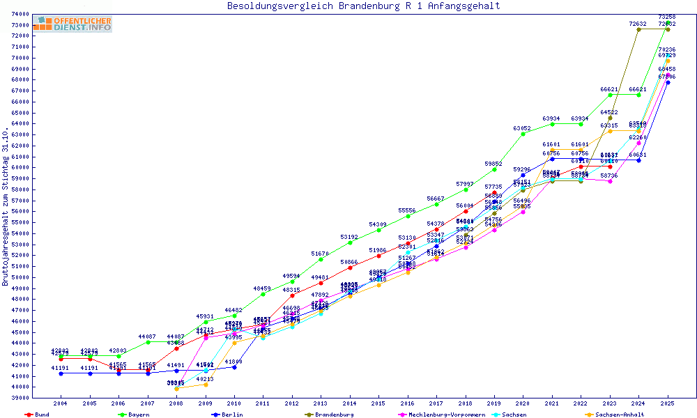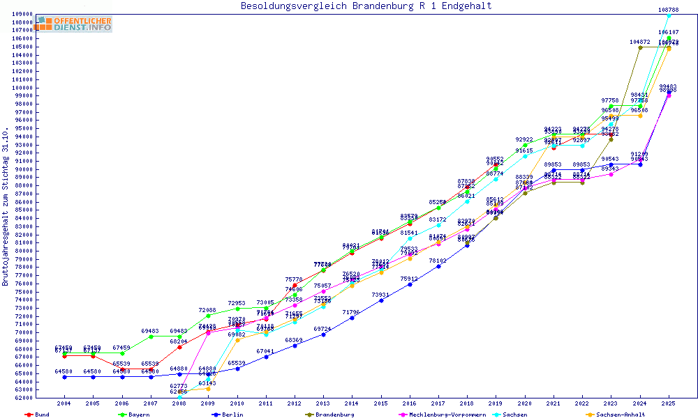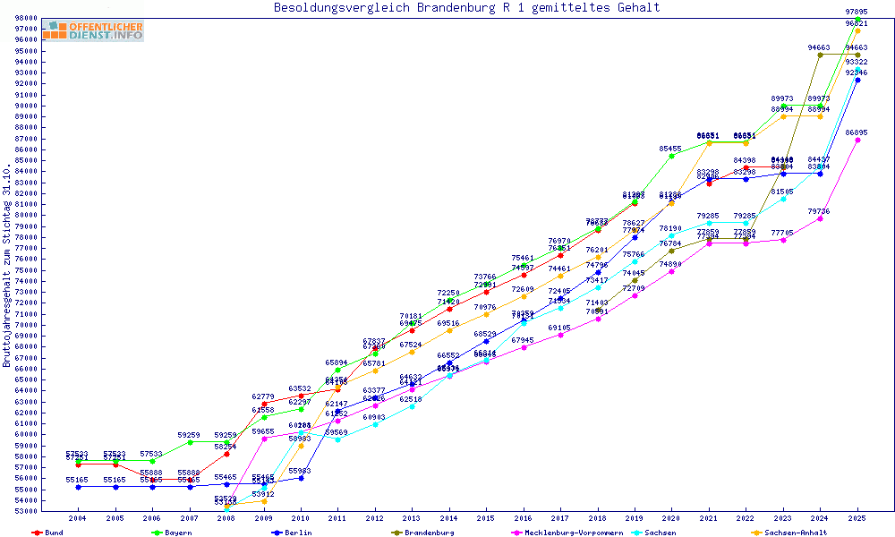 | Brandenburg | 104.873 € | +2695 € | +2.6% | 26 Jahre | ||||