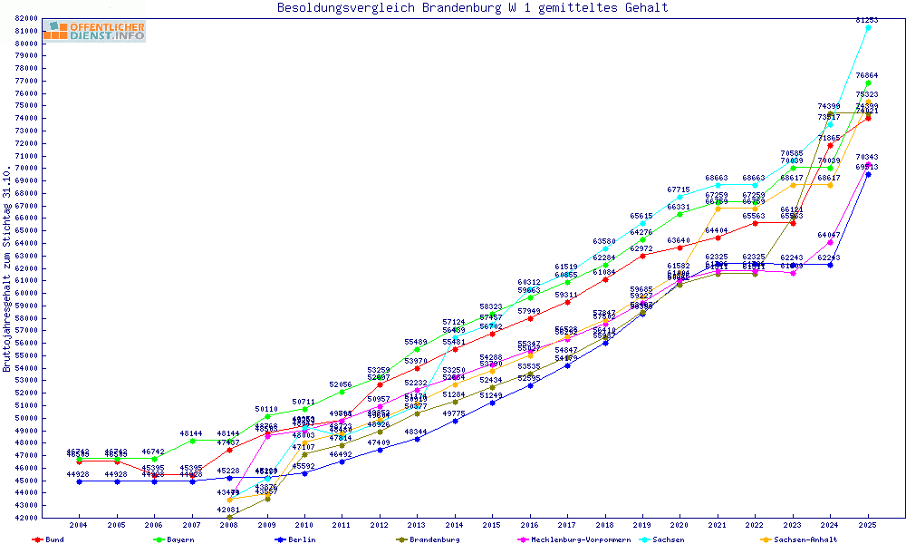 | Brandenburg | 74.400 € | +1344 € | +1.8% | ||||