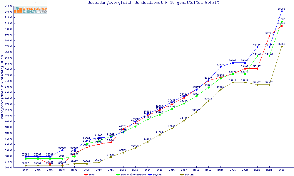 | Besoldungsvergleich A 10 im Jahr 2025 | gemitteltes Gehalt | ||||||
