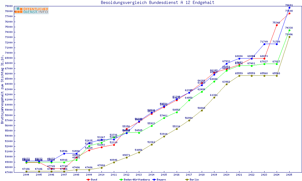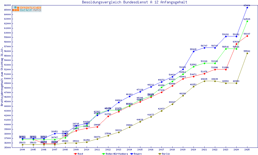 | Besoldungsvergleich A 12 im Jahr 2025 | Anfangsgehalt | ||||||
