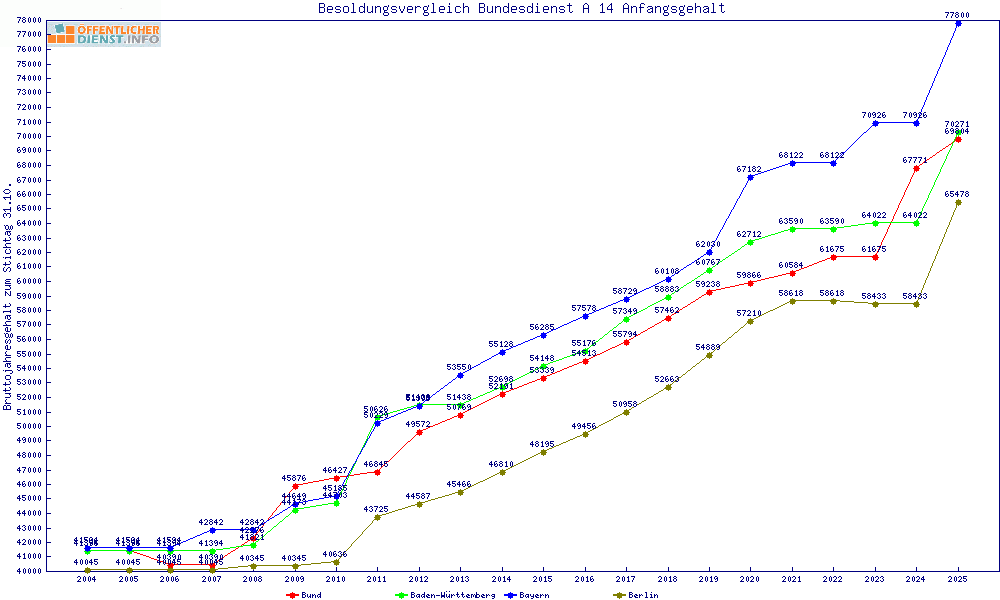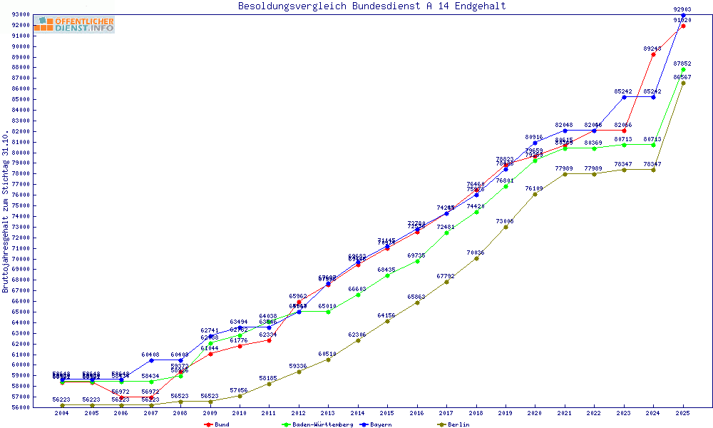 | Besoldungsvergleich A 14 im Jahr 2025 | Anfangsgehalt | ||||||